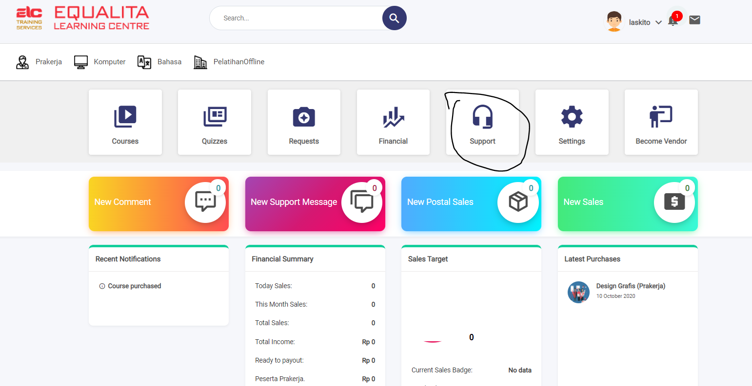 3. Klik Support