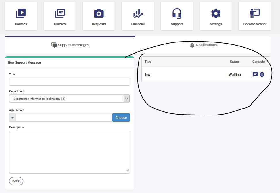 4. Klik Support Message